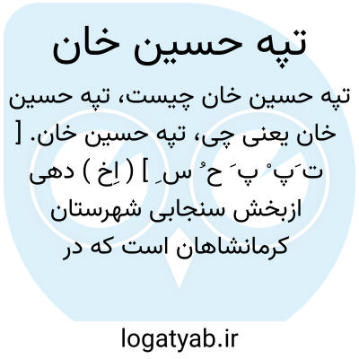 تپه حسین خان. [ ت َپ ْ پ َ ح ُ س ِ ] ( اِخ ) دهی ازبخش سنجابی شهرستان کرمانشاهان است که در هفت هزارگزی شمال کوزران و یکهزار گزی خاور راه فرعی کوزران به ثلاث واقع است دشتی سردسیر است و 60 تن سکنه دارد، آب آن از سراب قره دانه و محصول آنجا غلات و حبوبات، لبنیات و جزئی توتون و چغندر قند است و شغل اهالی زراعت و گله داری است و راه مالرو دارد و در تابستان اتومبیل میتوان برد. ( از فرهنگ جغرافیایی ایران ج 5 ).