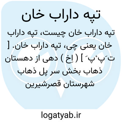 تپه داراب خان. [ ت َپ ْپ َ ] ( اِخ ) دهی از دهستان ذهاب بخش سر پل ذهاب شهرستان قصرشیرین است که در شانزده هزارگزی شمال باختری سرپل ذهاب و سه هزارگزی باختر راه فرعی به اویسی و چهار هزارگزی مرز ایران و عراق واقع است، دشتی گرمسیرو مالاریائی است و 100 تن سکنه دارد. آب آن از زهاب رودخانه و برف و باران و دله شیر است و محصول آنجا غلات دیم و لبنیات است و شغل اهالی زراعت و گله داری است راه مالرو دارد. ( از فرهنگ جغرافیایی ایران ج 5 ).