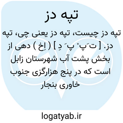 تپه دز. [ ت َپ ْ پ َ دِ ] ( اِخ ) دهی از بخش پشت آب شهرستان زابل است که در پنج هزارگزی جنوب خاوری بنجار کنار راه فرعی بند کهک به زابل واقع است جلگه ای گرم و معتدل است و 447 تن سکنه دارد. آب آن از رود هیرمند و محصول آنجا غلات و لبنیات است و شغل اهالی زراعت و گله داری و قالیچه و گلیم و کرباس بافی است.راه مالرو دارد. ( از فرهنگ جغرافیایی ایران ج 8 ).