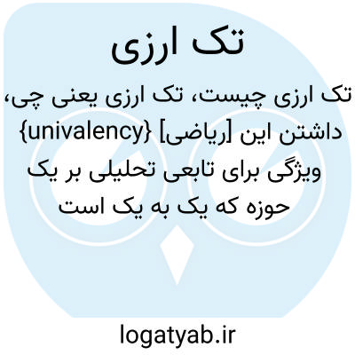 {univalency} [ریاضی] داشتن این ویژگی برای تابعی تحلیلی بر یک حوزه که یک به یک است