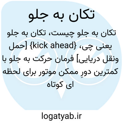 {kick ahead} [حمل ونقل دریایی] فرمان حرکت به جلو با کمترین دورِ ممکن موتور برای لحظه ای کوتاه