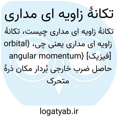 {orbital angular momentum} [فیزیک] حاصل ضرب خارجی بُردار مکان ذرۀ متحرک حول یک مبدأ در بُردار تکانۀ خطی آن