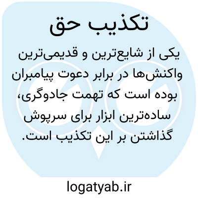 [ویکی فقه] تکذیب حق (قرآن). تهمت جادوگری ساده ترین و شایع ترین تهمت ها به پیامبران و تکذیب حق است و سرچشمه این تکذیب، روحیه سرکش انسان است.