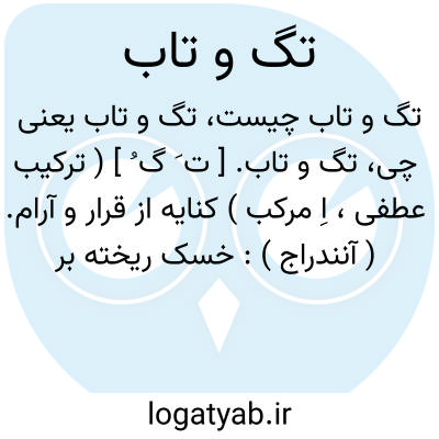 تگ و تاب. [ ت َ گ ُ ] ( ترکیب عطفی، اِ مرکب ) کنایه از قرار و آرام. ( آنندراج ):