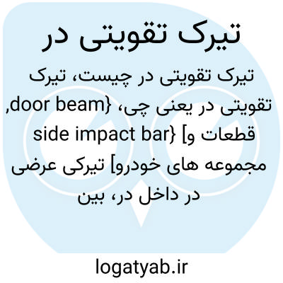 {door beam, side impact bar} [قطعات و مجموعه های خودرو] تیرکی عرضی در داخل در، بین پوستۀ بیرونی و درونی، برای تقویت در در برابر ضربات جانبی