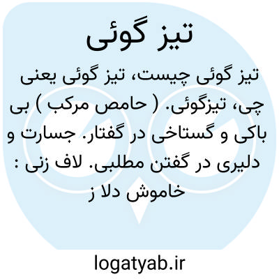 تیزگوئی. ( حامص مرکب ) بی باکی و گستاخی در گفتار. جسارت و دلیری در گفتن مطلبی. لاف زنی: