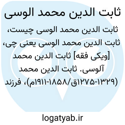 [ویکی فقه] ثابت الدین محمد آلوسی. ثابت الدین محمد (۱۲۷۵-۱۳۲۹ق/۱۸۵۸-۱۹۱۱م)، فرزند نعمان خیرالدین، فقیه، قاضی و محدث بوده است.
