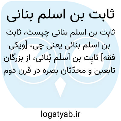 [ویکی فقه] ثابِت بن اَسلَم بُنانی، از بزرگان تابعین و محدّثان بصره در قرن دوم هجری است.کنیه وی ابومحمد و منسوب به بنانه است، که برخی آن را نام قبیله بنی سعدبن لُؤَیّبن غالب و برخی نام مادر یا دایه فرزندان سعد دانسته اند و برخی نیز گفته اند که نام محله ای در بصره بوده که قبیله بنانه، ساکن آنجا بوده است.