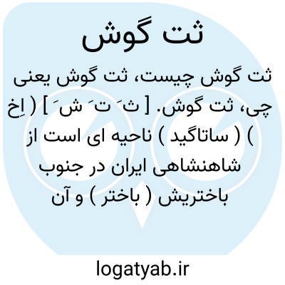 ثت گوش. [ ث َ ت َ ش َ ] ( اِخ ) ( ساتاگید ) ناحیه ای است از شاهنشاهی ایران در جنوب باختریش ( باختر ) و آن افغانستان مرکزی است که تقریباً از هرات تا حوالی سند باشد. ( ایران باستان ص 1452 ).