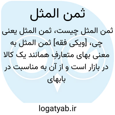 [ویکی فقه] ثمن المثل به معنی بهای متعارفِ همانند یک کالا در بازار است و از آن به مناسبت در بابهای تفلیس، مضاربه، وکالت و اطعمه و اشربه سخن گفته شده است.
