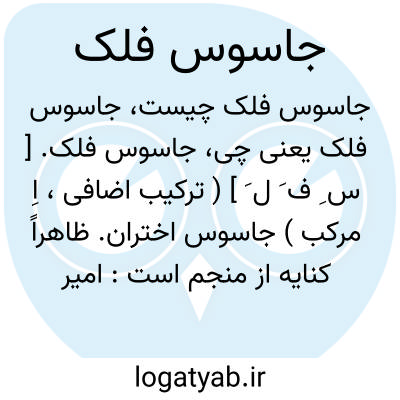 جاسوس فلک. [ س ِ ف َ ل َ ] ( ترکیب اضافی، اِ مرکب ) جاسوس اختران. ظاهراً کنایه از منجم است: امیر اشارت کرد سوی حاجب بلکاتکین تا خواجه را به جامه خانه برد... خواجه [احمدبن حسن میمندی ] برخاست و بجامه خانه رفت و تا نزدیک چاشتگاه همی ماند که طالعی نهاده بود جاسوس فلک خلعتی پوشیدن را. ( تاریخ بیهقی ص 150 ).