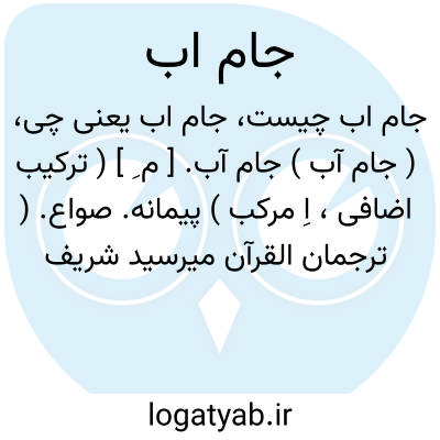 ( جام آب ) جام آب. [ م ِ ] ( ترکیب اضافی، اِ مرکب ) پیمانه. صواع. ( ترجمان القرآن میرسید شریف جرجانی ). رجوع به جام شود.