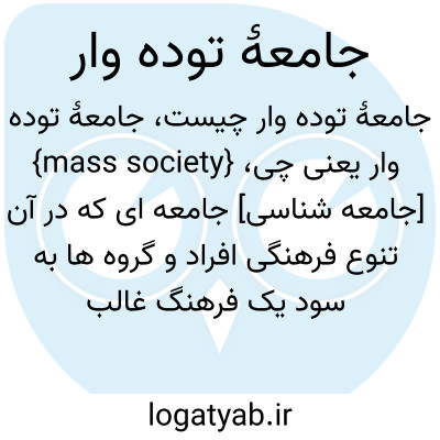 {mass society} [جامعه شناسی] جامعه ای که در آن تنوع فرهنگی افراد و گروه ها به سود یک فرهنگ غالب از میان برود یا به شدت آسیب ببیند و نوعی یکدستی فرهنگ ها و ارزش ها و تضعیف سازمان های مدنی حاکم شود