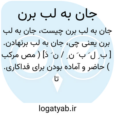 جان به لب برنهادن. [ ب ِ ل َ ب َ ن ِ / ن َ دَ] ( مص مرکب ) حاضر و آماده بودن برای فداکاری. تا پای جان در انجام دادن کار کسی مهیا بودن: