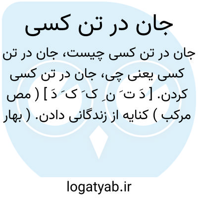 جان در تن کسی کردن. [ دَ ت َ ن ِ ک َ ک َ دَ ] ( مص مرکب ) کنایه از زندگانی دادن. ( بهار عجم ) ( آنندراج ): میکند جان در تن امید لعل باده نوش روی آتشناک خون مرده می آرد بجوش.صائب ( از بهار عجم ).