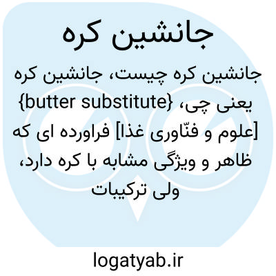{butter substitute} [علوم و فنّاوری غذا] فراورده ای که ظاهر و ویژگی مشابه با کره دارد، ولی ترکیبات سازندۀ آن متفاوت است