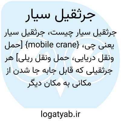 {mobile crane} [حمل ونقل دریایی، حمل ونقل ریلی] هر جرثقیلی که قابل جابه جا شدن از مکانی به مکان دیگر باشد