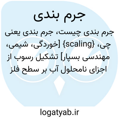 {scaling} [خوردگی، شیمی، مهندسی بسپار] تشکیل رسوب از اجزای نامحلول آب بر سطح فلز