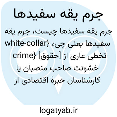 {white-collar crime} [حقوق] تخطی عاری از خشونت صاحب منصبان یا کارشناسان خبرۀ اقتصادی از حقوق کیفری با اتکا بر دانش حرفه ای یا نفوذ سیاسی به قصد بهره برداری مالی