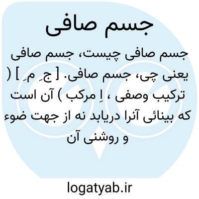 جسم صافی. [ ج ِ م ِ ] ( ترکیب وصفی، اِ مرکب ) آن است که بینائی آنرا دریابد نه از جهت ضوء و روشنی آن جسم صافی بلکه از جهت روشنی دیگر و این از آن است که بصر چیزهای رنگین را به ضوء خورشید دریابد. ( از مصنفات بابا افضل ج 2 ص 31 ).