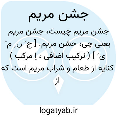 جشن مریم. [ ج َ ن ِ م َ ی َ ] ( ترکیب اضافی، اِ مرکب ) کنایه از طعام و شراب مریم است که از جنبانیدن درخت حاصل میشد. ( برهان قاطع ): فنادیها من تحتها الا تحزنی قد جعل ربک تحتک سریا.و هزی الیک بجذع النخلة تساقط علیک رطباً جنیا. فکلی و اشربی و قری عیناً. ( قرآن 19 / 24 - 26 ). || جشن مریم عیدی است که نصاری معمول میدارند بنام روزی که مریم را خرما از درخت حاصل آمد. ( حاشیه وحید دستگردی بر خسرو و شیرین نظامی ):