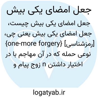 {one-more forgery} [رمزشناسی] نوعی حمله که در آن مهاجم با در اختیار داشتن n زوج پیام و امضا، به دنبال جعل امضا بر روی پیام