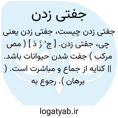 جفتی زدن. [ ج ُ زَ دَ ] ( مص مرکب ) جفت شدن حیوانات باشد. || کنایه از جماع و مباشرت است. ( برهان ). رجوع به جفت شدن و جفتی شود.