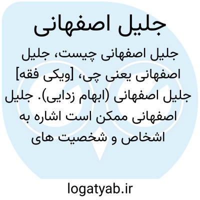 [ویکی فقه] جلیل اصفهانی (ابهام زدایی). جلیل اصفهانی ممکن است اشاره به اشخاص و شخصیت های ذیل باشد: • جلیل دوست خواه اصفهانی، از دانشمندان، محققان و ادبای پرکار اصفهان• جلیل گلریز خاتمی اصفهانی، هنرمند معاصر در اصفهان