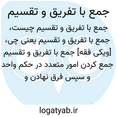 [ویکی فقه] جمع با تفریق و تقسیم جمع کردن امور متعدد در حکم واحد و سپس فرق نهادن و تقسیم آن ها است.