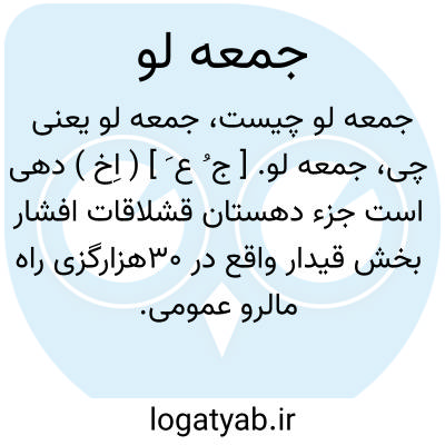 جمعه لو. [ ج ُ ع َ ] ( اِخ ) دهی است جزء دهستان قشلاقات افشار بخش قیدار واقع در 30هزارگزی راه مالرو عمومی. موقع جغرافیایی آن کوهستانی و هوای آن سردسیری است. دارای 199 تن سکنه. آب آن از قزل اوزن و محصول آن غلات و شغل اهالی زراعت و گلیم و جاجیم بافی است.راه مالرو دارد. ( از فرهنگ جغرافیایی ایران ج 2 ).