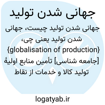{globalisation of production} [جامعه شناسی] تأمین منابع اولیۀ تولید کالا و خدمات از نقاط مختلف جهان، با تکیه بر تفاوت های محلی و ملی، برای دستیابی به بیشترین سود و کمترین هزینه و بالاترین کیفیت