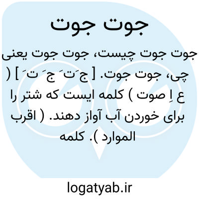 جوت جوت. [ ج َت َ ج َ ت َ ] ( ع اِ صوت ) کلمه ایست که شتر را برای خوردن آب آواز دهند. ( اقرب الموارد ). کلمه ایست که بدان شتر را بسوی آب خوانند یا زجر کنند. ( منتهی الارب ).