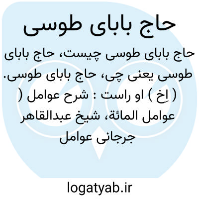 حاج بابای طوسی. ( اِخ ) او راست: شرح عوامل ( عوامل المائة، شیخ عبدالقاهر جرجانی عوامل متوفی بسال 471 هَ. ق. ) و اعراب کافیه ابن الحاجب ( متوفی در سال 646 هَ. ق. ).