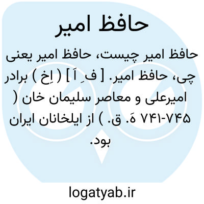 حافظ امیر. [ ف ِ اَ ] ( اِخ ) برادر امیرعلی و معاصر سلیمان خان ( 741-745 هَ. ق. ) از ایلخانان ایران بود. رجوع به امیر حافظ شود.
