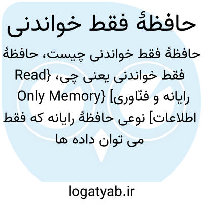 {Read Only Memory} [رایانه و فنّاوری اطلاعات] نوعی حافظۀ رایانه که فقط می توان داده ها را از روی آن خواند اختـ. حافظۀ خواندنی ROM
