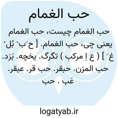 حب الغمام. [ ح َب ْ بُل ْ غ َ ] ( ع اِ مرکب ) تگرگ. یخچه. بَرَد. حب المزن. حبقر. حب قر. عبقر. عَب. حب المزنة. ( اقرب الموارد ). || ژاله. ( منتهی الارب ).