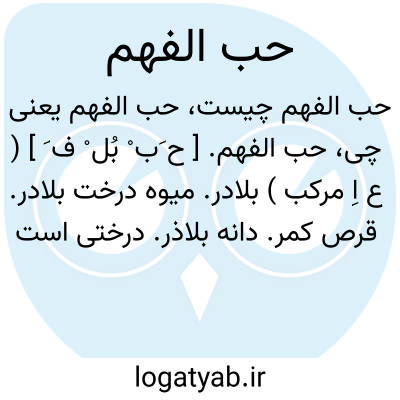 حب الفهم. [ ح َب ْ بُل ْ ف َ ] ( ع اِ مرکب ) بلادر. میوه درخت بلادر. قرص کمر. دانه بلاذر. درختی است بزرگ و در هند بسیار است. فقال بعضهم لبعض: ان السندباداسقاه حب الفهم فأخرسه. ( سندبادنامه عربی ص 352 ).
