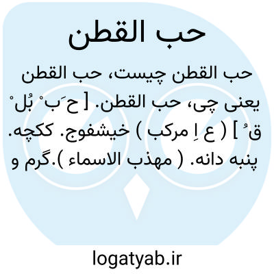 حب القطن. [ ح َب ْ بُل ْ ق ُ ] ( ع اِ مرکب ) خیشفوج. ککچه. پنبه دانه. ( مهذب الاسماء ).گرم و تر است در اول ضیق النفس و سرفه را نفع دهد و طبع را نرم دارد شربتی از او هفت درم است. و صاحب اختیارات گوید: خیشفوج است بپارسی پنبه دانه گویند. بهترین وی بزرگ و مغزدار بود و طبیعت او گرم و تر است در دویم و گویند سرد است نافع بود جهت ربو و سینه را نیکو بود و سرفه را نافع بود و طبع را نرم دارد مقدار مستعمل وی هفت درم باشد و گویند مضر بود بگرده و مصلح آن خمیر بنفشه ( ؟ ) بود و بدل آن تخم کنگر بود.