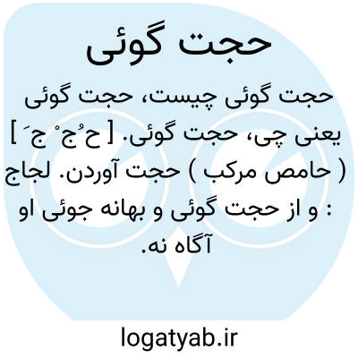 حجت گوئی. [ ح ُج ْ ج َ ] ( حامص مرکب ) حجت آوردن. لجاج: و از حجت گوئی و بهانه جوئی او آگاه نه. ( سندبادنامه ص 289 ).