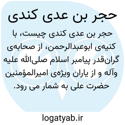 [ویکی فقه] حُجْربن عَدی بن جَبَله کِندی، کنیه اش ابوعبدالرحمن، معروف به حجرالخیر، صحابی پیامبر صلی الله علیه وآله و از یاران خاص حضرت علی علیه السلام و از بزرگان و فضلای کوفه می باشد.