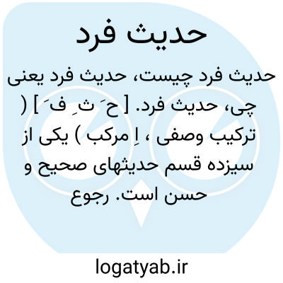 حدیث فرد. [ ح َ ث ِ ف َ ] ( ترکیب وصفی، اِ مرکب ) یکی از سیزده قسم حدیثهای صحیح و حسن است. رجوع به کشاف اصطلاحات الفنون و حدیث شود.