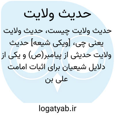 [ویکی شیعه] حدیث ولایت حدیثی از پیامبر(ص) و یکی از دلایل شیعیان برای اثبات امامت علی بن ابی طالب(ع) است. این حدیث با عبارت های مختلفی در منابع شیعه و سنی نقل شده که عبارت «هُوَ وَلِیُّ کُلِّ مُؤْمِنٍ بَعْدی؛ او ولیّ هر مؤمنی پس از من است» از مشهورترین آنهاست.