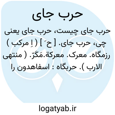حرب جای. [ ح َ ] ( اِ مرکب ) رزمگاه. معرک. معرکة.مَکَرّ. ( منتهی الارب ). حربگاه: اسفاهدون را در این روز بکشتند در حرب جای. ( تاریخ طبرستان ).