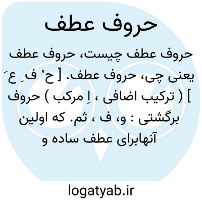 حروف عطف. [ ح ُ ف ِ ع َ ] ( ترکیب اضافی، اِ مرکب ) حروف برگشتی: و، ف، ثم. که اولین آنهابرای عطف ساده و دومین برای عطف با ترتیب و سومین آنها برای عطف با تأخیر است. رجوع به حرف ربط شود.