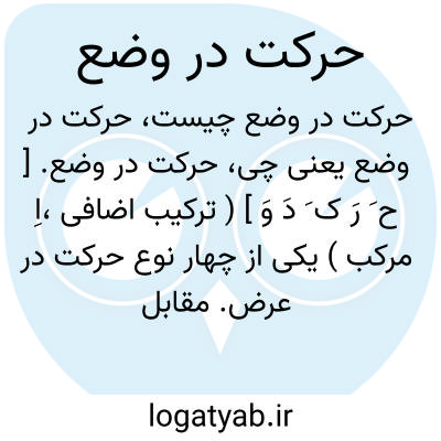 حرکت در وضع. [ ح َ رَ ک َ دَ وَ ] ( ترکیب اضافی،اِ مرکب ) یکی از چهار نوع حرکت در عرض. مقابل حرکت در کم و کیف و اَین. رجوع به وضع و حرکت وضعی شود.