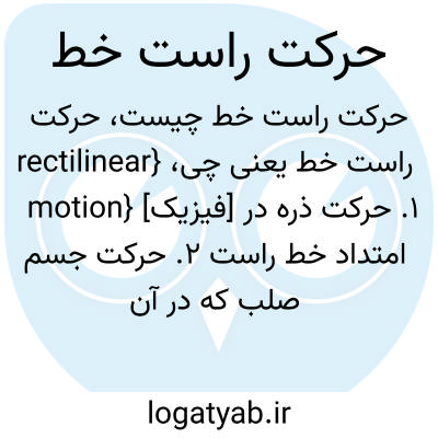 {rectilinear motion} [فیزیک] 1. حرکت ذره در امتداد خط راست 2. حرکت جسم صلب که در آن تمام ذرات مسافت های مساوی را در امتداد مسیرهای موازی مستقیم می پیمایند