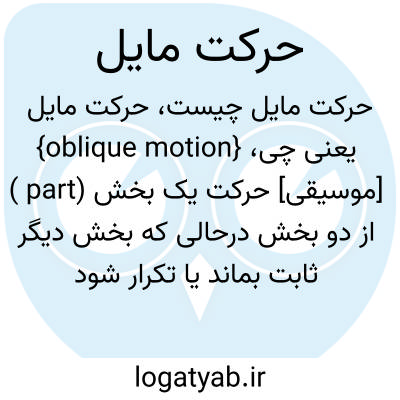 {oblique motion} [موسیقی] حرکت یک بخش (part ) از دو بخش درحالی که بخش دیگر ثابت بماند یا تکرار شود