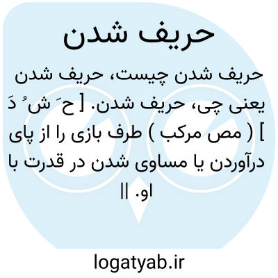 حریف شدن. [ ح َ ش ُ دَ ] ( مص مرکب ) طرف بازی را از پای درآوردن یا مساوی شدن در قدرت با او. || مغلوب کردن حریف در جنگ.