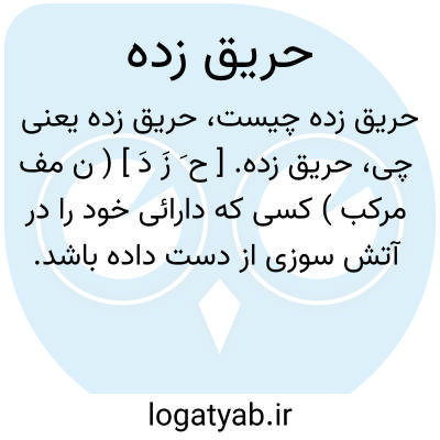 حریق زده. [ ح َ زَ دَ ] ( ن مف مرکب ) کسی که دارائی خود را در آتش سوزی از دست داده باشد.