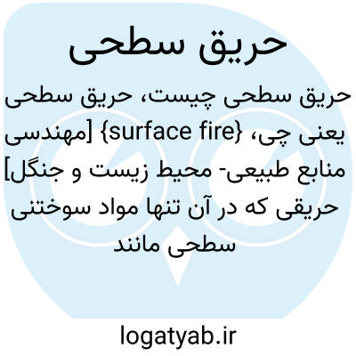 {surface fire} [مهندسی منابع طبیعی- محیط زیست و جنگل] حریقی که در آن تنها مواد سوختنی سطحی مانند لاشبرگ (litter ) و چوبماند (debris ) می سوزد